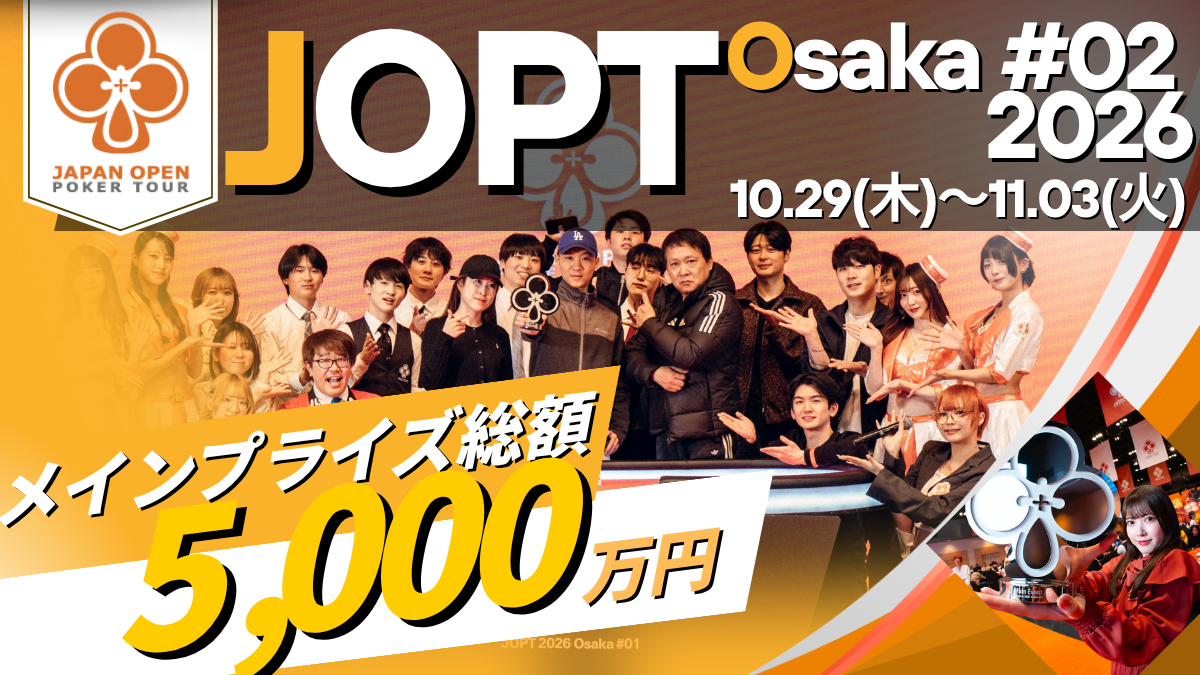 2026年9月18日(金)から23日(水・祝)までの6日間、日本最大級のポーカーイベント「JOPT 2026 Sapporo #01」が開催されます。 これまでの開催において、総エントリー数が5,000に迫るなど、本大会は札幌のポーカーシーンにおける歴史を常に塗り替えてきました... -