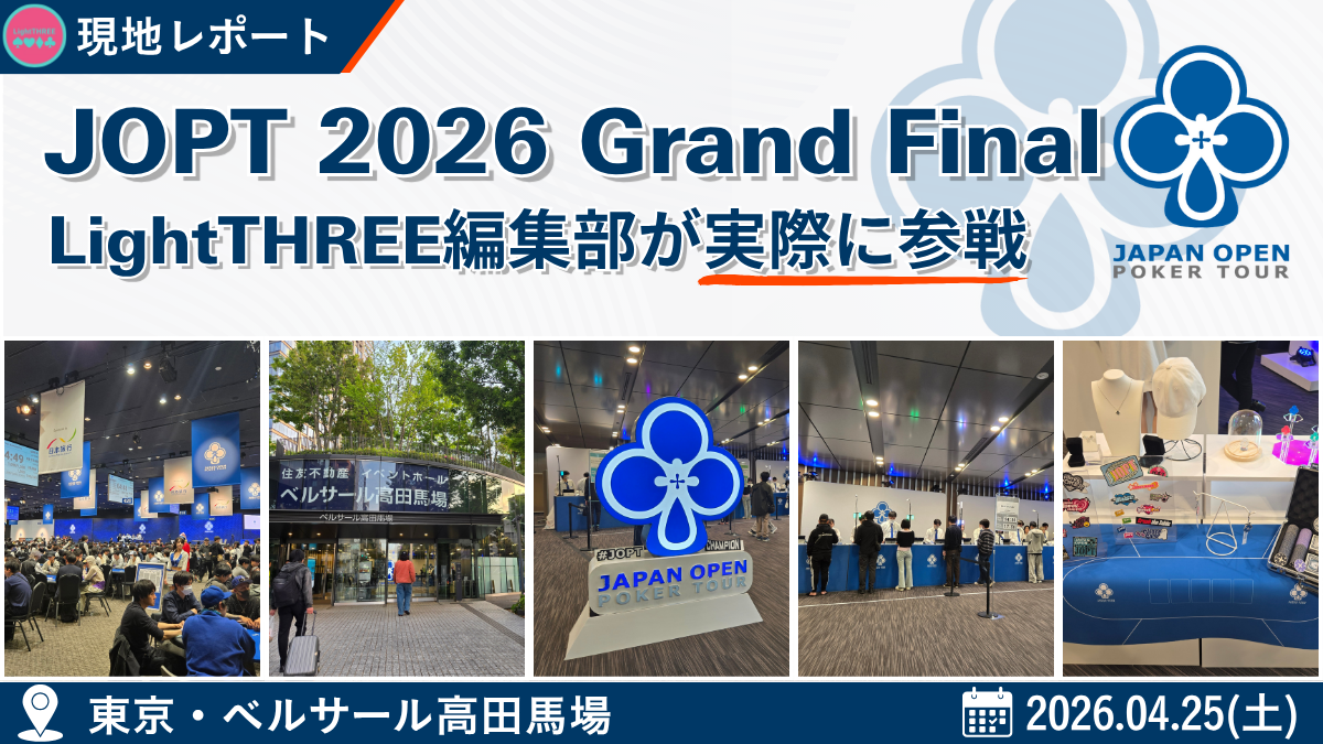 2026年5月1日(金)から5月6日(水)までの6日間、東京・大崎のサミー本社を舞台に、「NIPPON SERIES TOKYO 2026」が開催されます。 700万円保証のメインイベントを筆頭に、初心者から上級者まで参加できる、多彩なトーナメントが用意されています。 さらに今... -