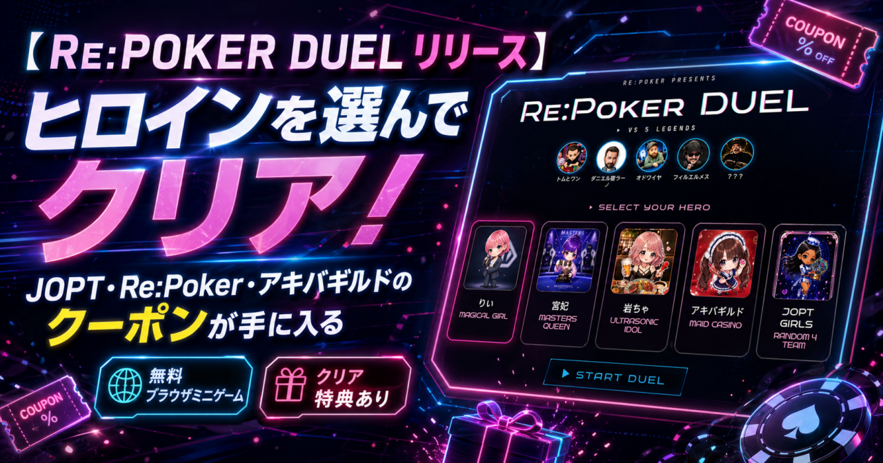 2026年4月24日(金)から5月6日(水)にベルサール高田馬場で開催されているJOPT 2026 Grand Finalでは、WPTのプライズがエントリー時に使用可能です。 本記事では、JOPTでWPTのプライズを使用したエントリーの手順について解説します。 事前に必要な簡単手続... -