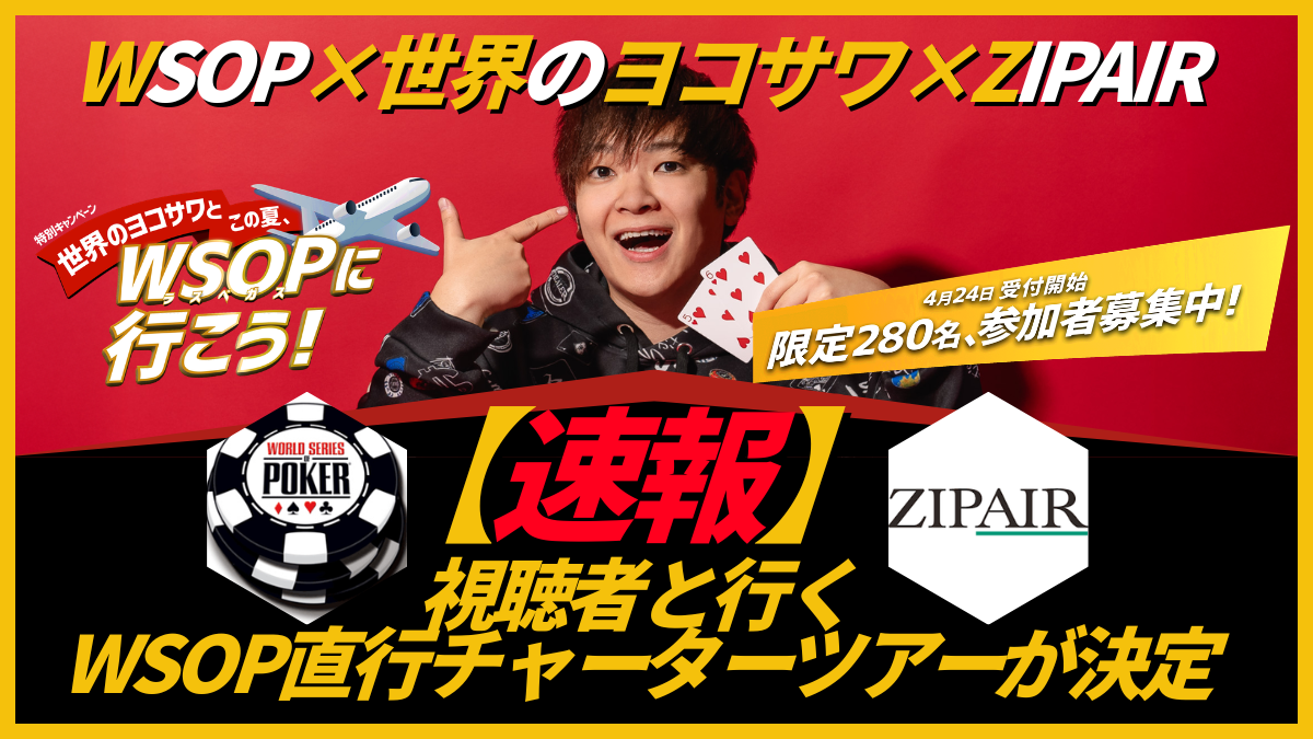 【速報】世界のヨコサワ×ZIPAIR!視聴者と行くWSOP直行チャーターツアーが決定