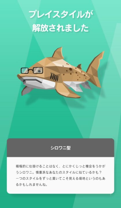 自分のプレイスタイルはどのサメタイプなのか、プレイしているうちに自動で出てきます。