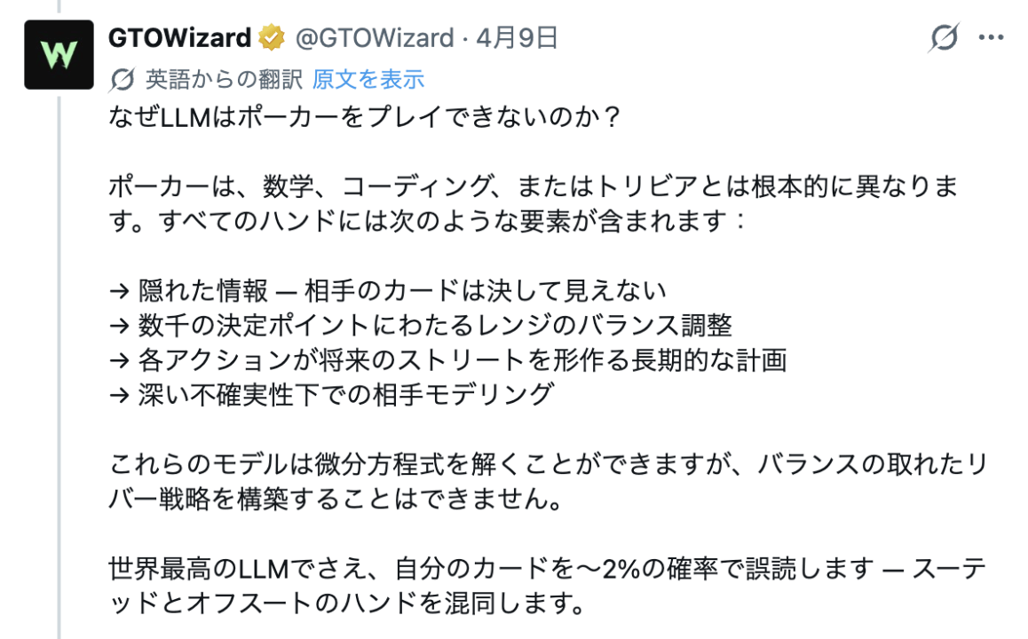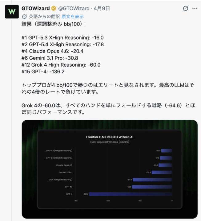 2026年4月9日、GTO Wizardの公式Xからこのようなポストが投稿されました。
