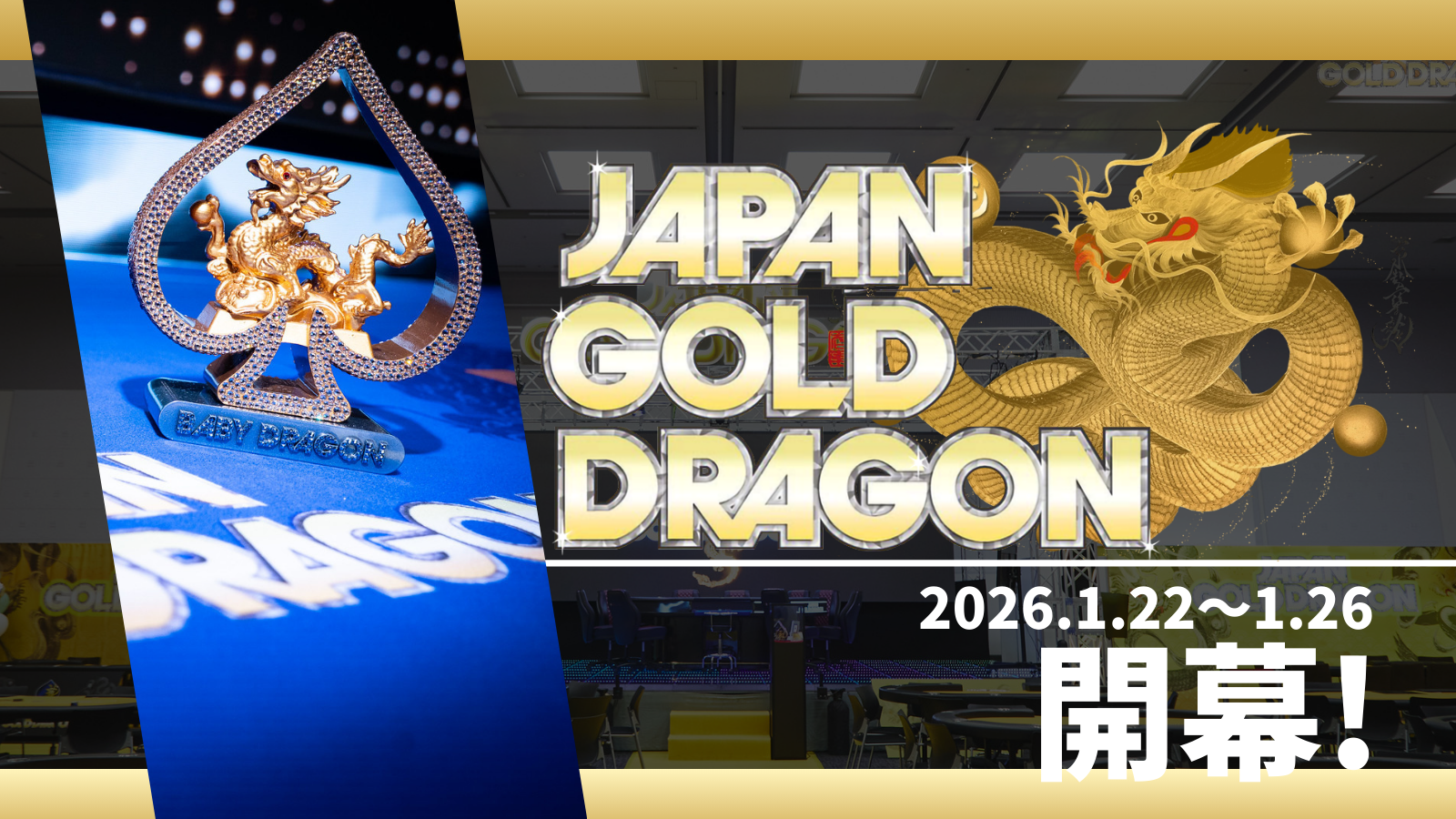 JAPAN GOLD DRAGONは、関西最大級のポーカーイベントとして、2026年のポーカーシーンの幕開けを華々しく飾るイベントとなるでしょう。