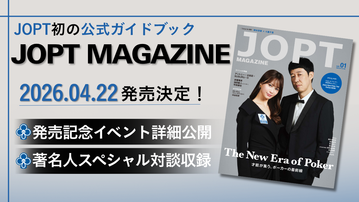 2025年12月27日から2026年1月4日にかけて開催された「JOPT 2026 Tokyo #01」では、 JOPT MAGAZINE協賛の「NLH Deepstack Sponsored by JOPT MAGAZINE」が行われました。