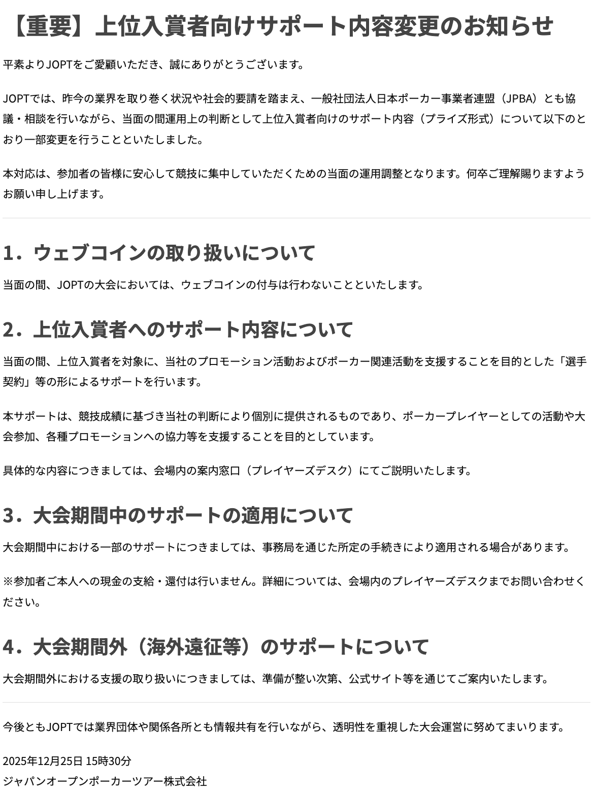 この記事では、JOPTのプライズ受け取りに関する変更について、公式情報をもとに徹底解説いたします。