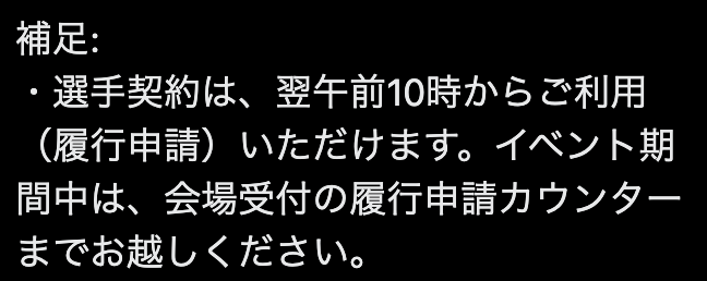 選手契約は、翌午前10時からご利用(履行申請)いただけます。