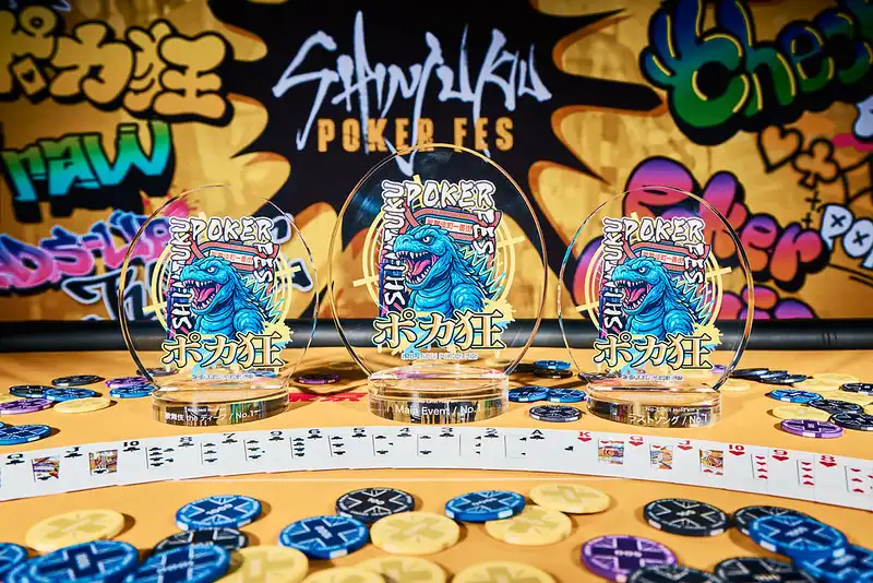 ストリートカルチャーとポーカーが融合した、新宿らしい攻めたデザインが目を引きます。手にしたとき、この街の熱量がそのまま伝わってくるトロフィーです。