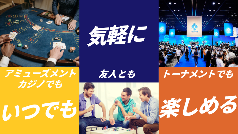 最初にどのポーカーから始めればいいか迷わずに済み、カジノでも友達同士でも、すぐに楽しいポーカー体験をスタートできます。