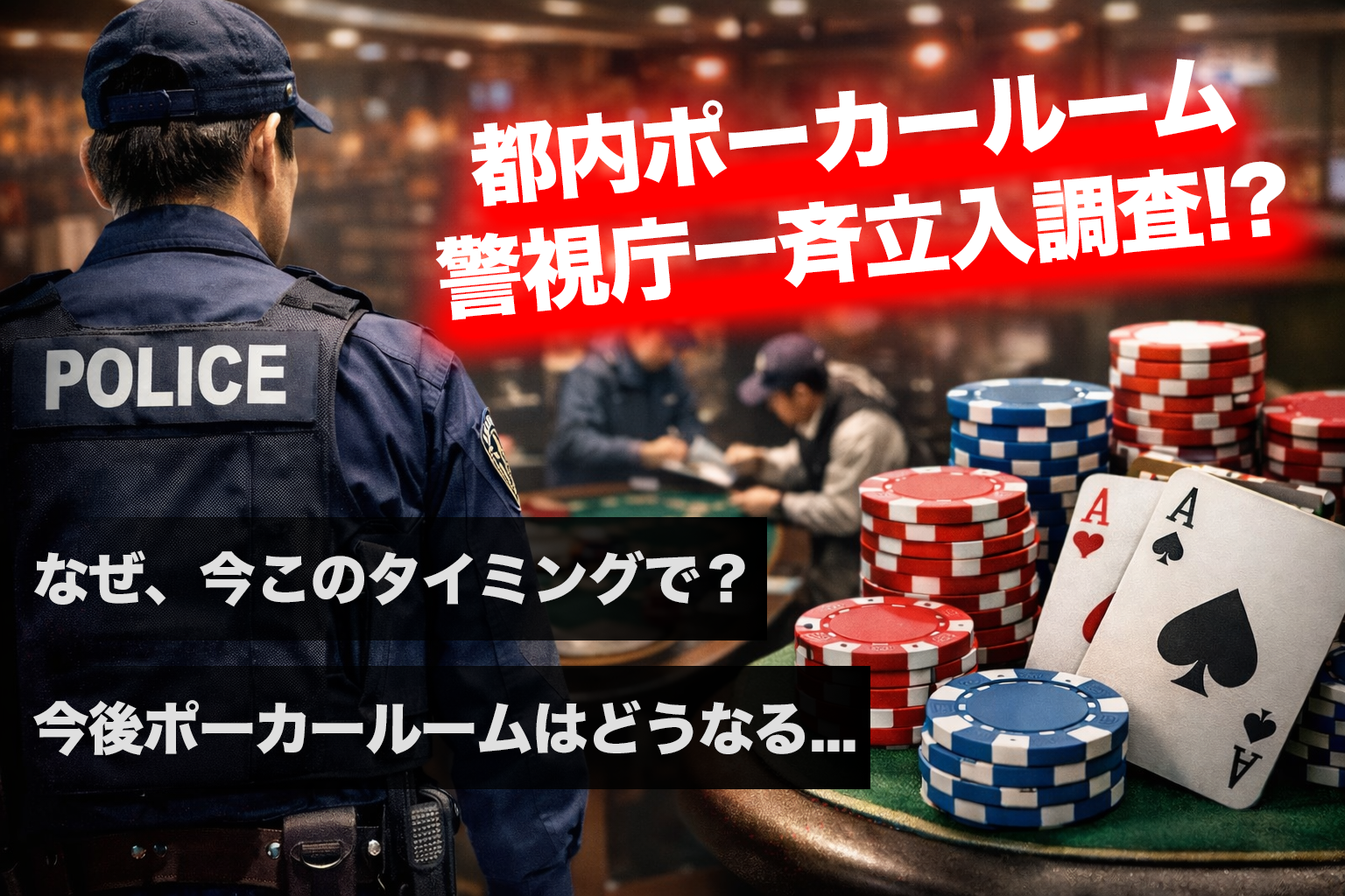 【緊急速報】ポーカールームに警察急襲!? 警視庁生活安全課が一斉調査に。