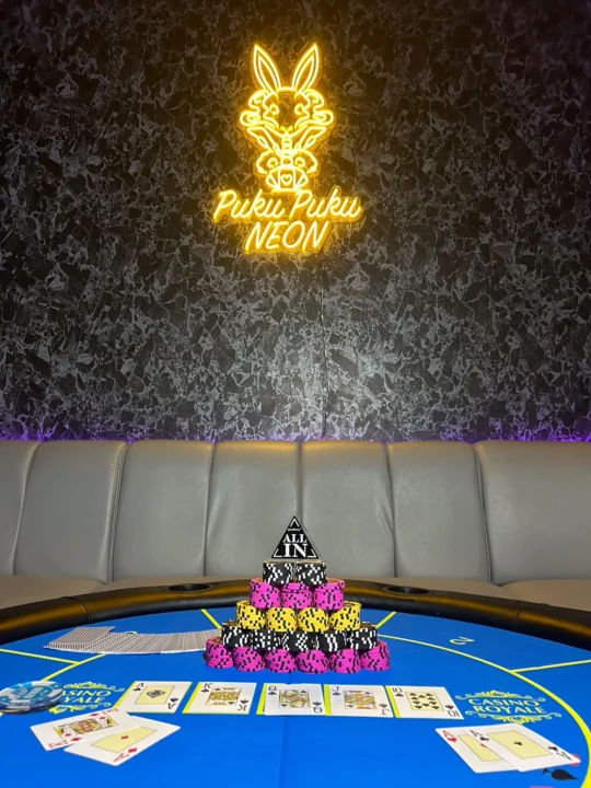 PukuPuku NEON新宿では店内に設置されたポーカーテーブルで、本格的なポーカープレイを楽しめるだけでなく、PukuPukuグループ自慢のハイクオリティなシーシャを楽しむこともできます。