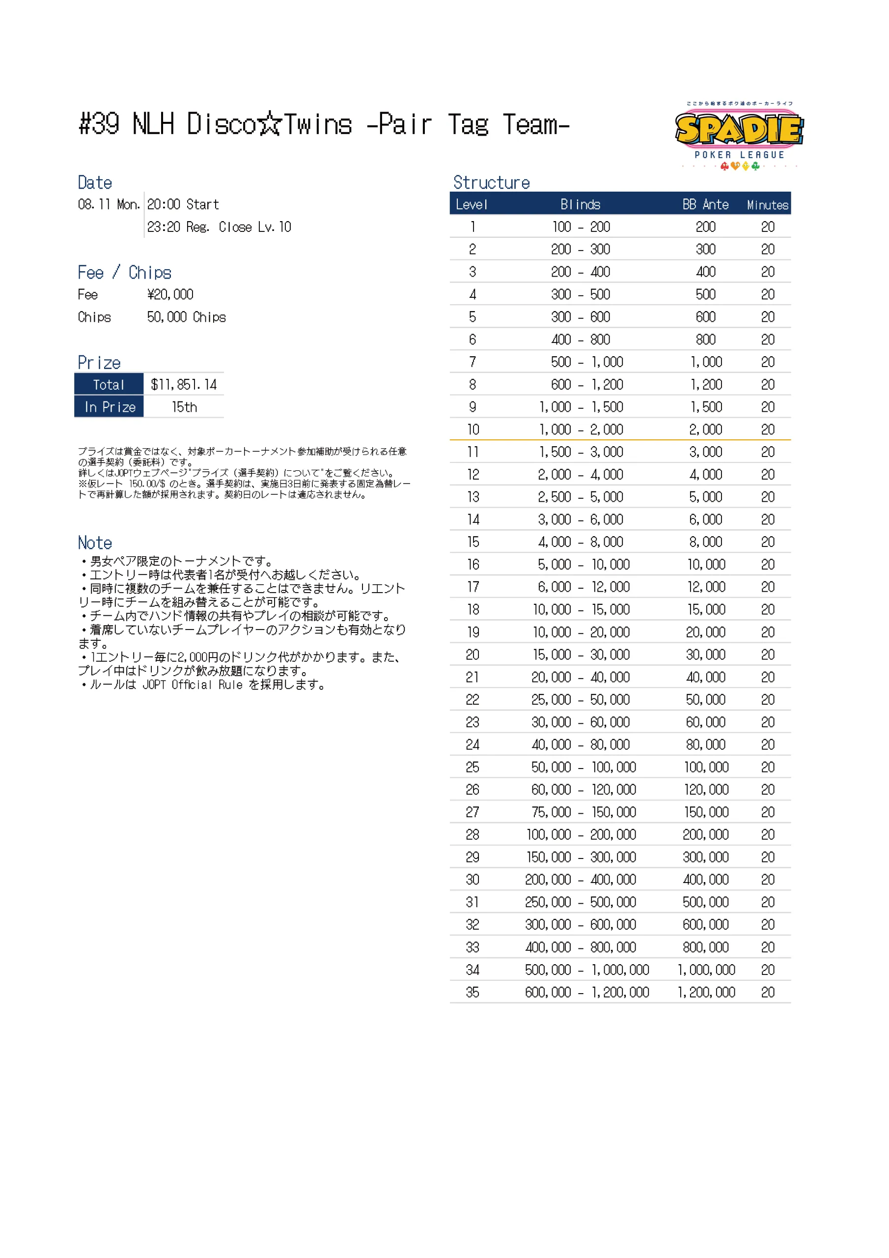 【男女ペアで挑戦!】NLH Disco☆Twins -Pair Tag Team-