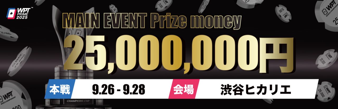 WPT Prime Tokyoは、世界的ポーカーツアー「WPT(World Poker Tour)」が主催する公式イベント「Prime」シリーズのひとつで、2025年9月に日本で初めて開催されるトーナメントです。